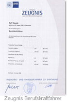Neben der Ausbilder - Eignungsprüfung und der Ausbildungserlaubnis der IHK zu Dortmund und Hagen für den Berufsabschluss als Berufskraftfahrer/in im Bereich Güter- und Personenverkehr, besitze ich die Qualifizierung nach BGG - 925 der Berufsgenossenschaft für die Ausbildung von Fahrern/innen für Gabelstapler und Flurförderzeuge.